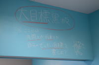 塾内の壁は、一面すべて黒板になっている部分があります。 塾生はそこに、自由に「大目標」と「小目標」を書くことができます。 「大目標」とは、●●高校に合格したい!!とか、次のテストで合計30点アップ!!とか、 長期的な目標のこと。 「小目標」とは、数学の宿題を終わらせる!とか、 問題集を10ページやるとか、 通ってきたその日に、塾で達成したい短期的な目標のこと。 「毎回、小さな目標を作り、達成し、それを積み重ねていくことで大きな夢を叶える。」 その感覚をつかむために、毎日入室時には、黒板に本気で落書きしてもらいます。 ほかの生徒の目に触れる所に自分の目標を書き出すことで、「退路を断つ」という意味もあります。 また、仲間とそれぞれの目標を共有し、一体感をもって頑張ってもらうためでもあります。 ● 3. 入って一礼、出て一礼。茶室や寺子屋をイメージした 「掘りごたつ教室」